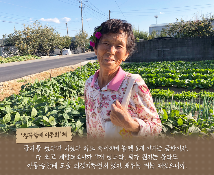 경상북도 칠곡군에서는 '성인문해교육'을 통해 한글을 배우신 어르신들이 계십니다. 한글을 깨우치고 지금껏 마음속 담아둔 이야기를 글로 가족들에게 전할 수 있게 되었습니다.