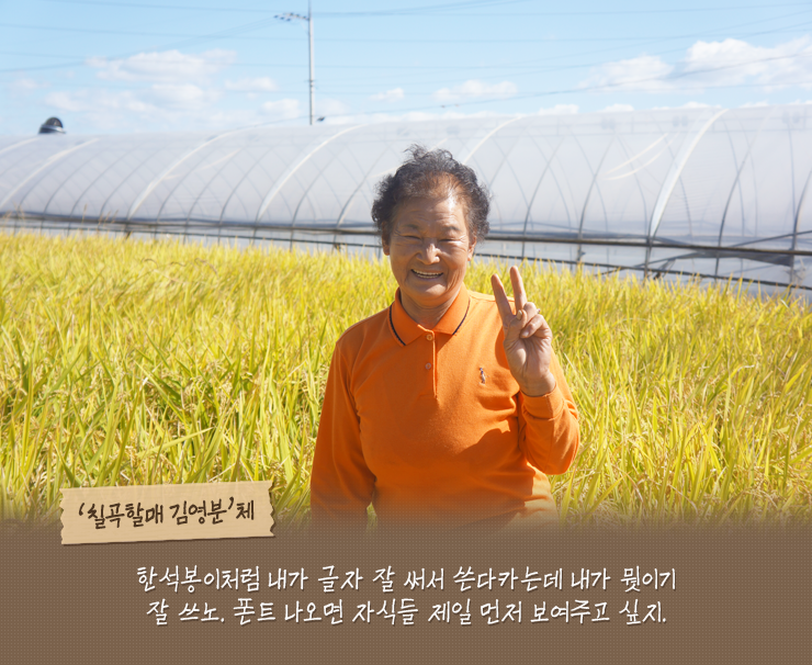 칠곡군의 '칠곡할매글꼴'은 다섯 분 할머니의 이야기를 담고 있어 그 가치가 높습니다. 할머니들의 삶과 마음이 모여 만들어진 폰트라서 더 의미가 있다고 생각합니다.